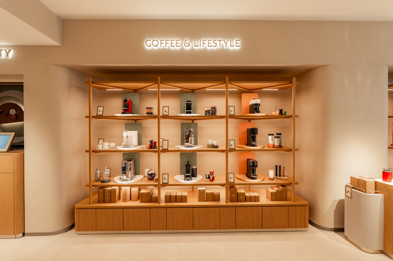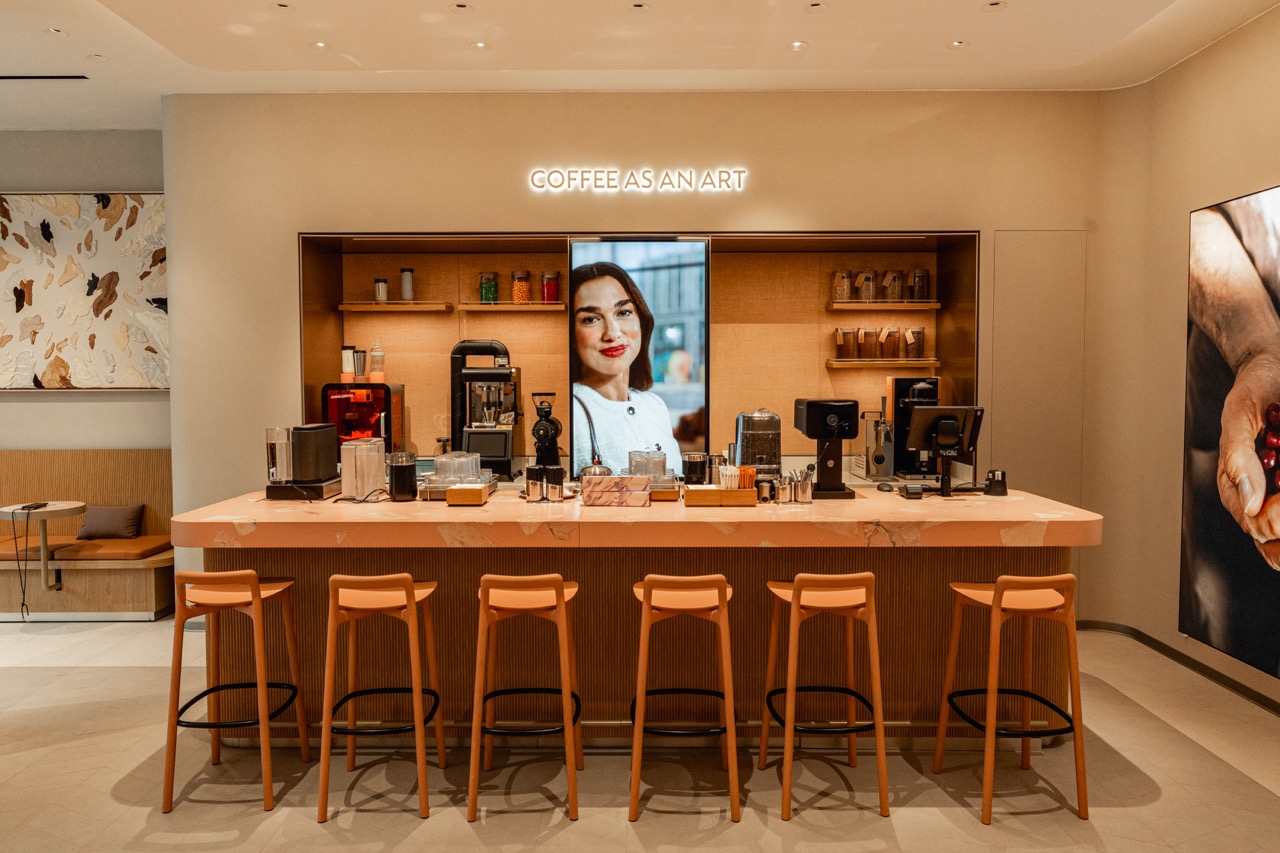 Mit dem neuen Konzept setzt Nespresso auf zarte Naturtöne, die mit Elementen aus Eiche dezent kontrastiert werden. Das Herzstück der Boutique bildet eine großzügige Kaffeebar, die einlädt, bei einem entspannten Kaffee zu verweilen, neue Sorten zu entdecken und in die Welt des Kaffees einzutauchen. Ergänzt wird die Boutique durch eine großzügige Außenterrasse. Die neue Nespresso-Boutique eröffnet inmitten der Frankfurter Innenstadt und ergänzt künftig eine der traditionsreichsten und exklusivsten Einkaufsadressen.