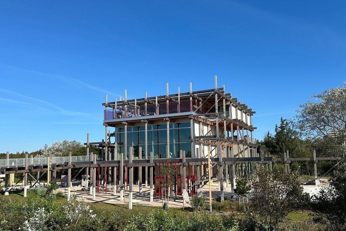 Das Erlebnis-Hus von St. Peter-Ording ist am 24. August 2023 als neuer Treffpunkt für Familien eröffnet worden. Zu den Attraktionen des viergeschossigen Pfahlbaus gehören ein 300 Quadratmeter großer Indoorspielplatz mit interaktiver Sportwand und Kletterlabyrinth, eine Koch- und Backinsel sowie eine 47 Meter lange Rutsche. Das spektakuläre Gebäude befindet sich in exponierter Lage am Nordsee-Küstenradweg und ist Teil der neuen Natur-Erlebnis-Promenade, die sich entlang des Deiches erstreckt. Dank der direkten Anbindung an die Promenade ist das Gebäude barrierefrei erreichbar.