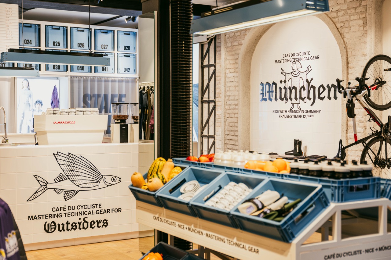 Café du Cycliste feiert mit der Eröffnung eines neuen Stores in München in der Frauenstraße 12 Premiere in Deutschland. Die französische Radsportmarke hat in der Nähe des Viltualienmarkts ihren insgesamt fünften Store eröffnet. Weitere Läden gibt es bereits in Nizza, Palma (Mallorca), Bédoin (Mont Ventoux) und in Paris, wo das Label im Juni dieses Jahres eröffnet hat. Der neue Store in München soll nicht nur als Verkaufspunkt sondern auch als Anlaufstelle für Cycling-Enthusiasten vor und nach Touren dienen. Dafür werden Fahrradstellplätze zur Verfügung gestellt sowie Kaffeespezialitäten, Getränke und Snacks angeboten. Das Ladendesign und der Ladenbau wurden vom Pariser Architekturbüro A.S.L. geplant.