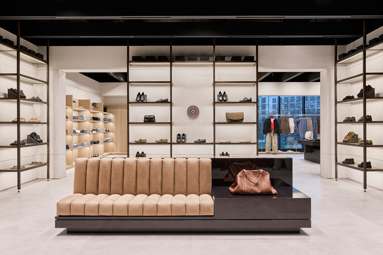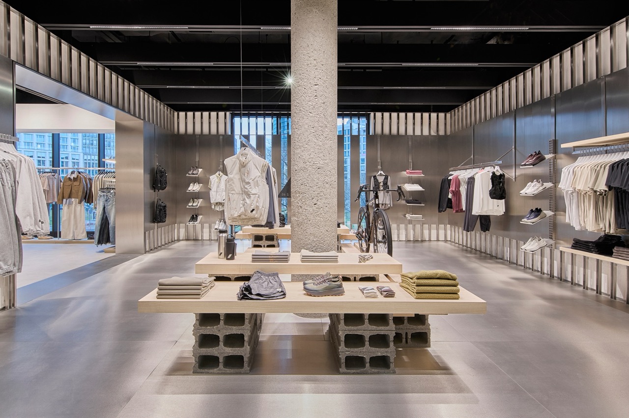 Nach Eröffnungen in Kalifornien, Osaka und Rom wird mit dem Store in Berlin das spezialisierte Store-Konzept von Zara Man weiter ausgebaut. Das vom Zara Architecture Studio entwickelte Store-Design schafft ein offenes, fließendes Raumerlebnis mit miteinander verbundenen Flächen. Eine offene Fassadengestaltung sorgt für viel Tageslicht, während schwarze, offen gestaltete Decken die architektonische Wirkung unterstreichen. Eine skulpturale Treppe aus mattschwarzem Holz verbindet die beiden Ebenen. Eine hochwertige Materialpalette, sorgfältig ausgewählte Designmöbel sowie einzelne antike Elemente prägen die Identität des Stores und schaffen eine zeitlose, anspruchsvolle Atmosphäre.